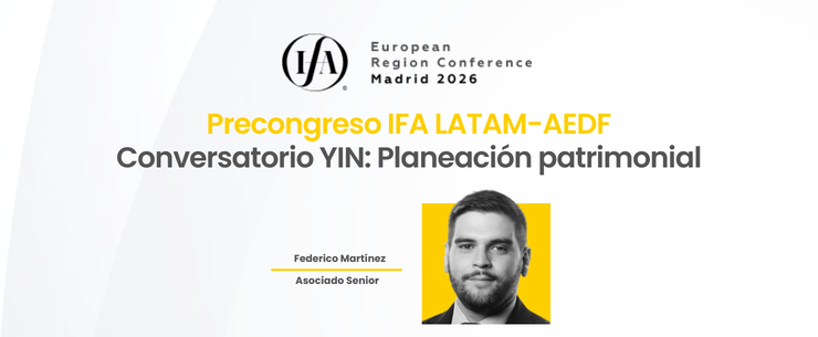 En el marco de la próxima Conferencia Europea de la IFA, nuestro asociado senior Federico Martinez Tebecheri participará en la Jornada Precongreso organizada conjuntamente por IFA LATAM y la Asociación Española de Derecho Financiero (AEDF), integrando el Panel YIN: Planeación patrimonial – movilidad, estructuras y fiscalidad en familias globales.